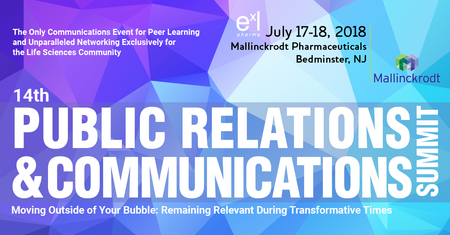 Whether you're more efficiently communicating your company's innovative therapies and technologies, pushing the limits to tell a more compelling narrative or building out your personal skill set to bring more to the proverbial table, it's time to take control. Built on a foundation of fourteen years of informative, relevant content and attended by communicators representing all segments of the healthcare ecosystem, the 14th PR and Communications Summit is designed to help you expect the unexpected, proactively prepare for crises and position your company, your brand and yourself as better than the competition. This is the only conference designed specifically for life science communicators, and our unique content, developed with input from your peers, ensures you return to the office with a plan to further your company, brands and yourself.