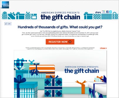 adds that AmEx is promoting the Gift Chain using online media, internal channels, card member statements and emails, and Facebook. “It’s so important for us to go where our cardmembers and