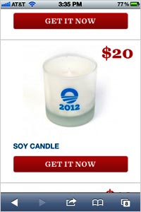 act. “Get 10% off $10 or more today in the Obama 2012 store using the discount code MONDAY10%” read the SMS message I got on my phone on Monday afternoon. Now, to be sure, registrants to