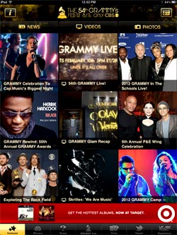 The official Grammy app from CBS Interactive started streaming concerts and pre-award red carpet walks into its apps in the days leading up to the Sunday awards. It