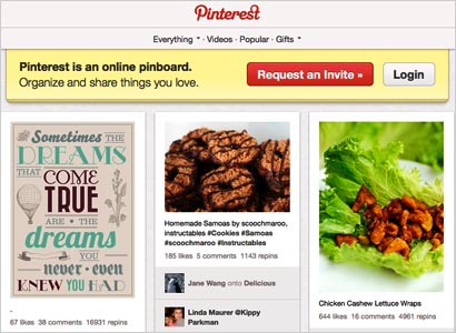 allows users to share the Pin on blogs and Web sites. Users can email an image URL or share the content as a Facebook Like and Twitter Tweet, just by clicking on a Pin. The guide tells us that