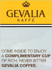 The Gevalia Cafe, at 253 West 47th St., will treat locals and NYC visitors to free cups of Gevalia coffee and coupons.