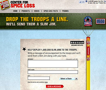 individual messages that have been posted on Slim Jim’s Web site (slimjim.com/troops) and its Facebook and Twitter accounts.