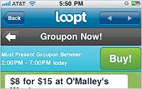 Location-based service Loopt began pushing out alerts in March for deeply discounted goods and services to keep pace with daily deal services like Groupon. … Read the whole story
