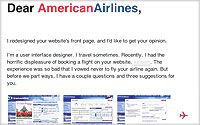 Dustin Curtis is a 22-year-old user interface designer. He also travels a fair bit. If you are American Airlines this might be an unfortunate … Read the whole story