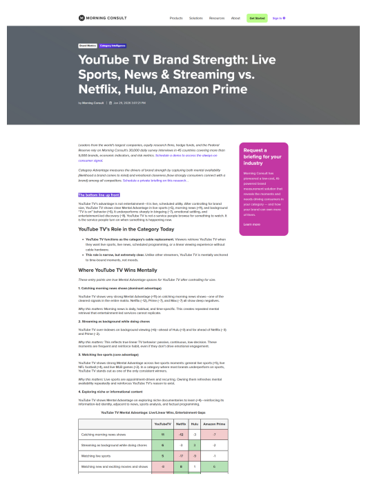 YouTube TV has a very clear identity in the streaming pecking order, and it looks a lot like cable without the box, researcher Morning Consult says about the Google-owned virtual multichannel video programming distributor (vMVPD).