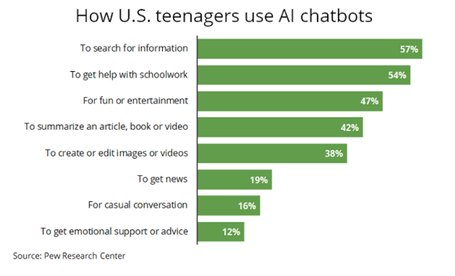 AI chatbots have become a common fixture in U.S. teenagers’ digital routines, alongside heavy use of platforms like YouTube, TikTok and Instagram, according to a new report from the Pew Research Center.